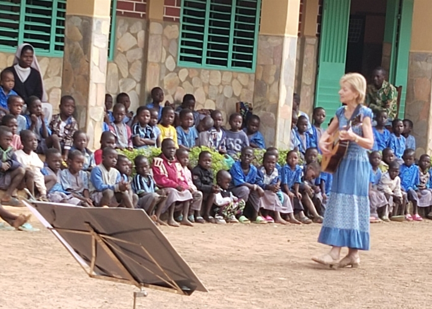 "J’ai pris beaucoup de plaisir à chanter pour les enfants de l’orphelinat San Filippo Smaldone, accueillie avec bienveillance, discipline aussi, les sœurs y veillent. Les regards empreints d’humilité, de crainte aussi, se font liesse dès que la confiance s’installe. Frapper dans les mains n’est pas un souci et chacun y prend plaisir, les sourires fleurissent animés d’une joie communicative… nous avons même fredonné ensemble « petit papa Noël » et « Vive le vent » (encore d’actualité en ce début janvier). Les enfants ont aussi chanté en chœur avec beaucoup de fougue et d’entrain l’hymne du Bénin, leurs voix cristallines résonnant comme des grelots mélodieux, enfants malentendants unis comme jamais aux autres enfants qui traduisent pour eux, aucune difficulté n’apparaît dans cette harmonieuse complicité touchante.